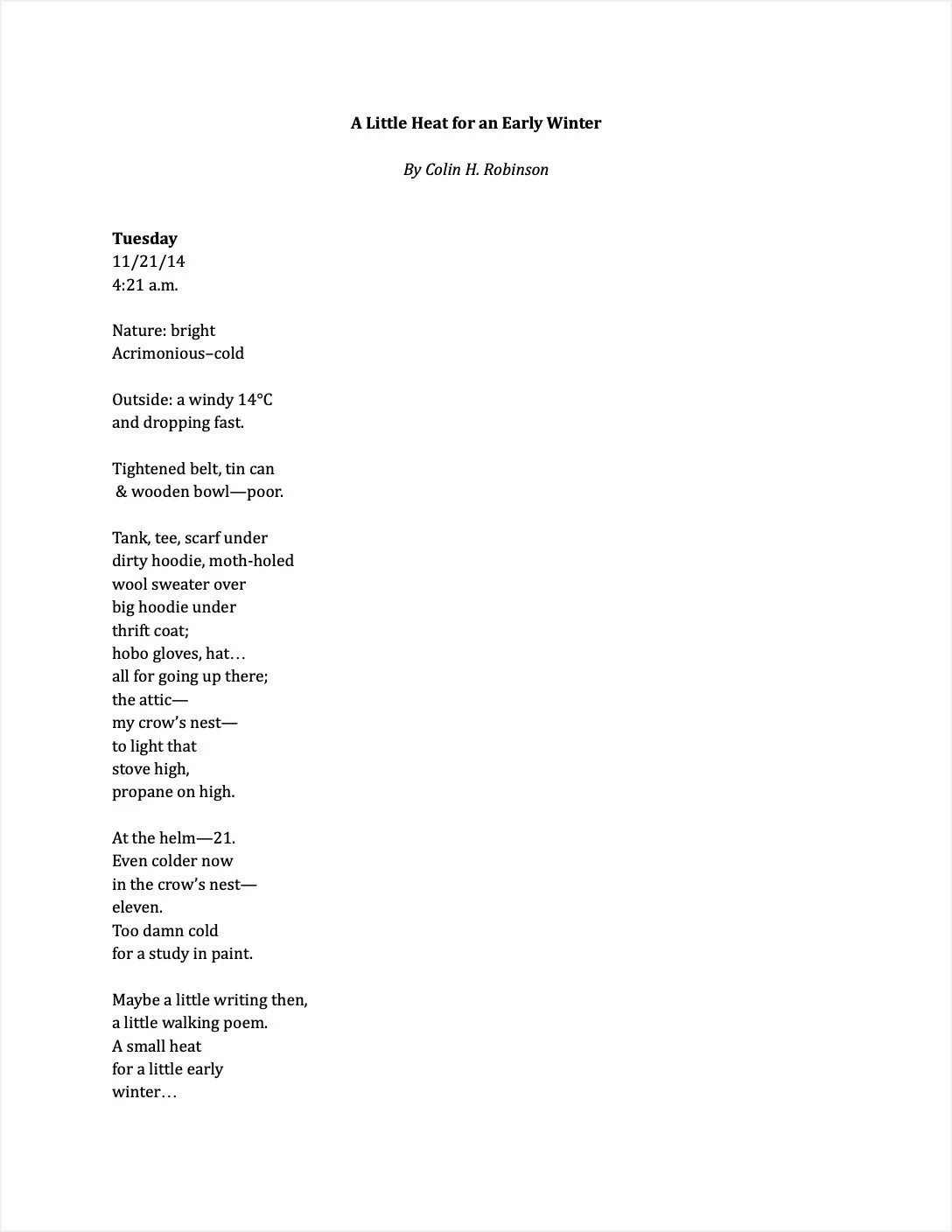 “A Little Heat for an Early Winter” Jan 25 Written By Colin H. Robinson Colin H. Robinson https://colinhartrobinson.com